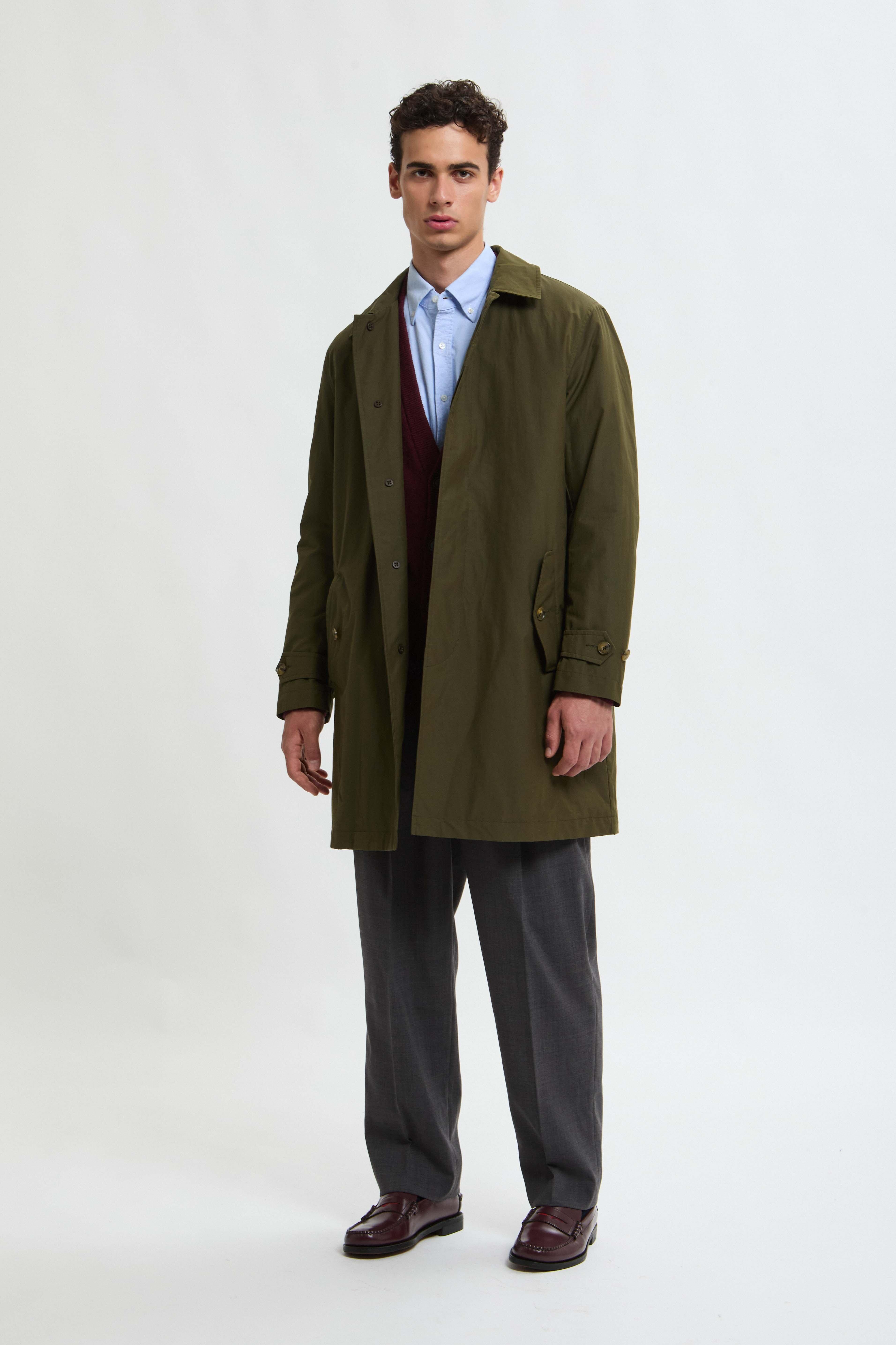 Gefertigt aus unserem charakteristischen Baracuta Cloth mit wasserabweisender Beschichtung, ist der G10 ein kürzerer, einreihiger Trenchcoat. Er teilt viele Eigenschaften mit dem G12-Modell, verfügt jedoch über eine kompaktere Silhouette. Zu den markanten Details dieses Designs gehören die charakteristische Regenschirm-Rückenpasse, der Hemdkragen und die Baracuta-Klappentaschen – zeitlose Elemente, die tief in der britischen Outerwear-Tradition verwurzelt sind.
