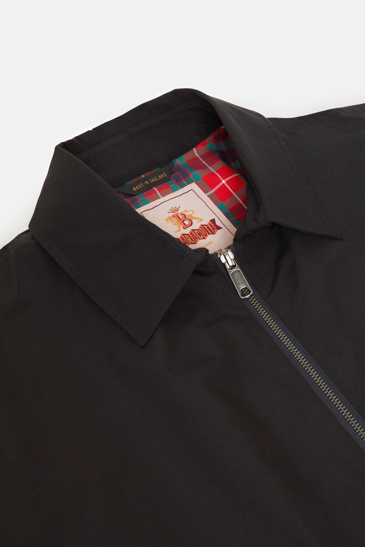 Die Baracuta G18 interpretiert einen Klassiker der späten 1960er-Jahre neu – mit klarer, moderner Kante, gefertigt aus dem ikonischen Baracuta Cloth, stolz hergestellt im Vereinigten Königreich. Die entspannte Silhouette bewegt sich dank zweier Bewegungsfalten mühelos mit, während der Kragenriegel mit Einzelknopfverschluss, der Zweiwege-Reißverschluss mit Logo und die vom Blouson-Design der 1970er inspirierten Taschen für einen unverwechselbaren, zugleich authentischen Look sorgen – funktional und ganz ohne Schnörkel. Vollständig mit dem charakteristischen Fraser-Tartan gefüttert, ist die G18 sowohl für die Stadt als auch für das Land gemacht. Mehr als nur eine Neuauflage: Ein bewusstes Designstatement. Jedes Detail steht für den Dialog zwischen Tradition und Moderne, Funktionalität und Stil: Ein Ausdruck von Baracutas anhaltender kultureller Relevanz.