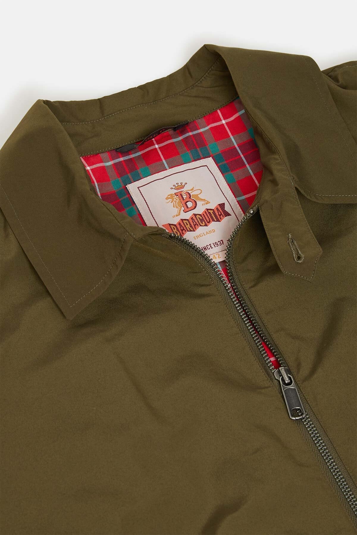 Die Baracuta G18 interpretiert einen Klassiker der späten 1960er-Jahre neu – mit klarer, moderner Kante, gefertigt aus dem ikonischen Baracuta Cloth, stolz hergestellt im Vereinigten Königreich. Die entspannte Silhouette bewegt sich dank zweier Bewegungsfalten mühelos mit, während der Kragenriegel mit Einzelknopfverschluss, der Zweiwege-Reißverschluss mit Logo und die vom Blouson-Design der 1970er inspirierten Taschen für einen unverwechselbaren, zugleich authentischen Look sorgen – funktional und ganz ohne Schnörkel. Vollständig mit dem charakteristischen Fraser-Tartan gefüttert, ist die G18 sowohl für die Stadt als auch für das Land gemacht. Mehr als nur eine Neuauflage: Ein bewusstes Designstatement. Jedes Detail steht für den Dialog zwischen Tradition und Moderne, Funktionalität und Stil: Ein Ausdruck von Baracutas anhaltender kultureller Relevanz.
