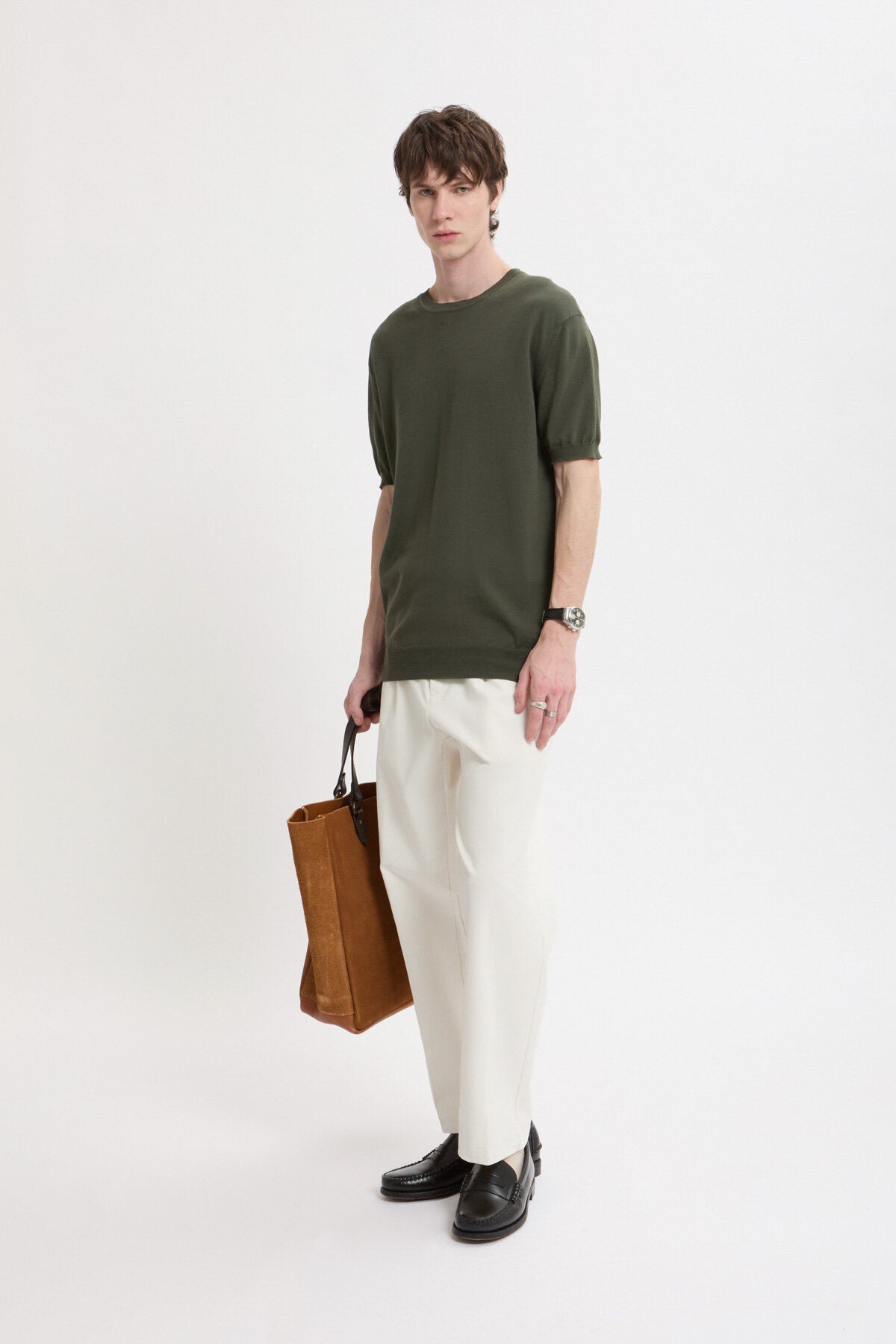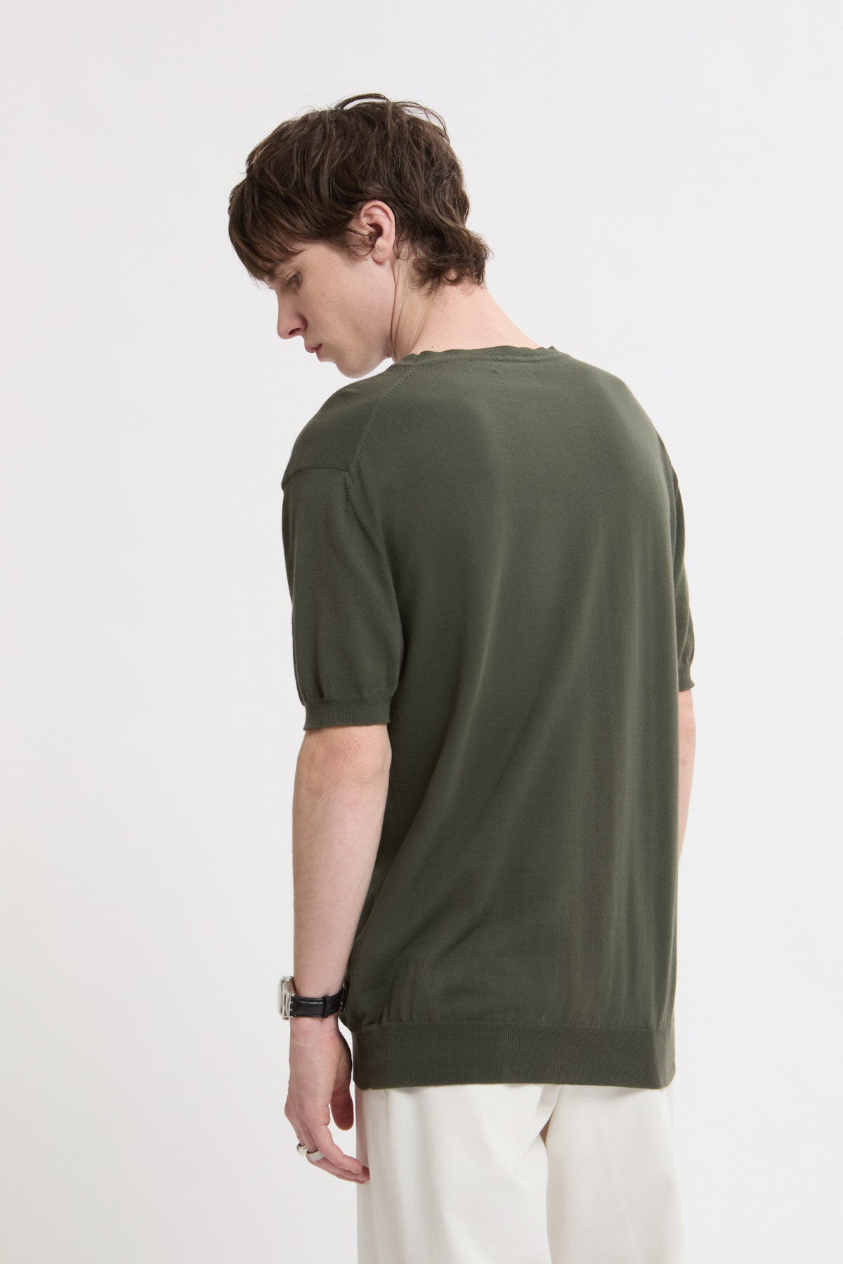 Das Strick-T-Shirt besteht aus 100 % Baumwolle und bietet ein weiches, atmungsaktives Tragegefühl und ein sauberes, strukturiertes Finish.