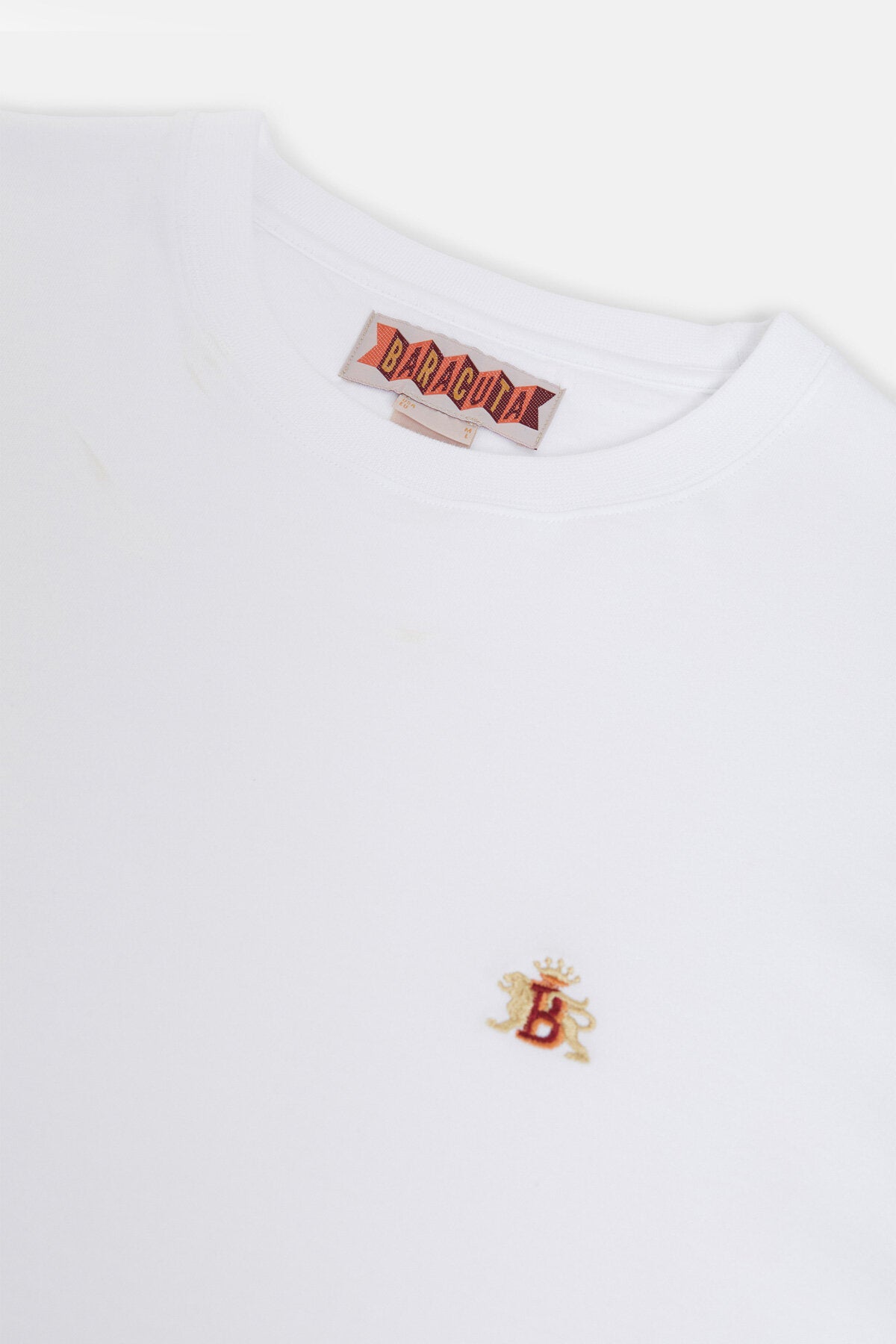 • Zu jeder G9 gehört ein T‑Shirt. Dieses Crewneck‑Tee mit Rundhalsausschnitt aus 100% Baumwolle ist weich, atmungsaktiv und auf Langlebigkeit ausgelegt. Das auf der Brust gestickte Baracuta‑Logo setzt einen dezenten, charakteristischen Akzent – perfekt für den täglichen Gebrauch.