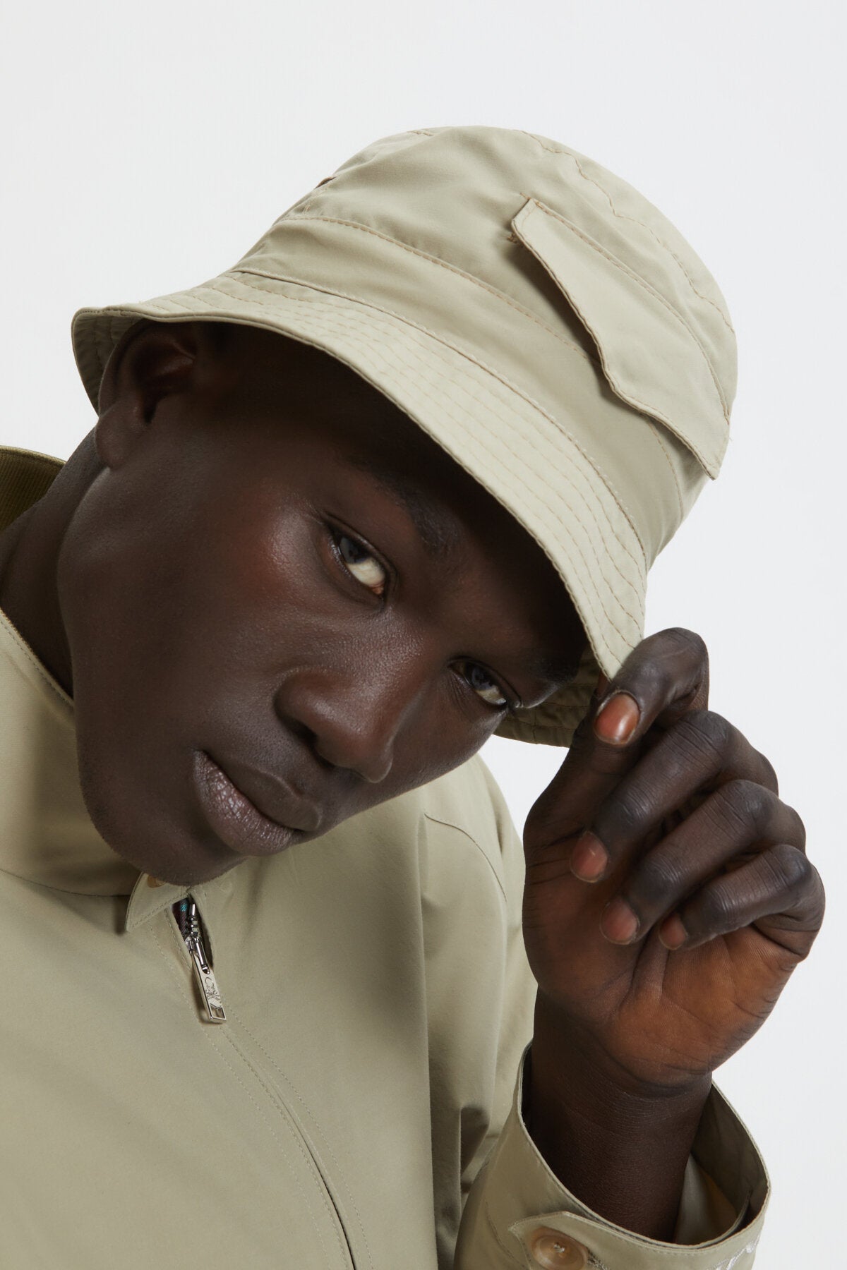 • Mastermind und Baracuta haben sich erneut für eine intensive Zusammenarbeit zusammengetan. Der Mastermind x Baracuta Fischerhut ist eine Verschmelzung von Streetstyle und Handwerkskunst. Der Hut ist mit den Logos der beiden Marken bestickt und verfügt außerdem über die kultige Regenschirm-Passe von Baracuta sowie eine funktionelle kleine Tasche mit Druckknopfverschluss. Überlegen Sie also, was Sie dort unterbringen können! Dieser in Italien aus Baracuta Cloth gefertigte und mit Fraser-Tartan gefütterte Hut aus atmungsaktiver Coolmax®-Baumwolle ist der Inbegriff genialer Zusammenarbeit.