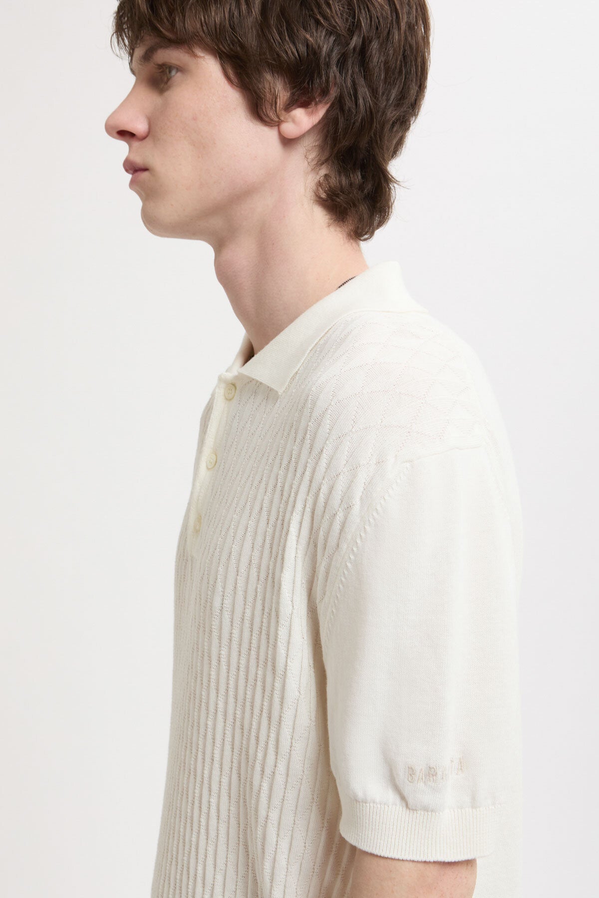 Le taglie Baracuta sono taglie UK. La polo a maniche corte Pattern Stitch presenta una vestibilità aderente.