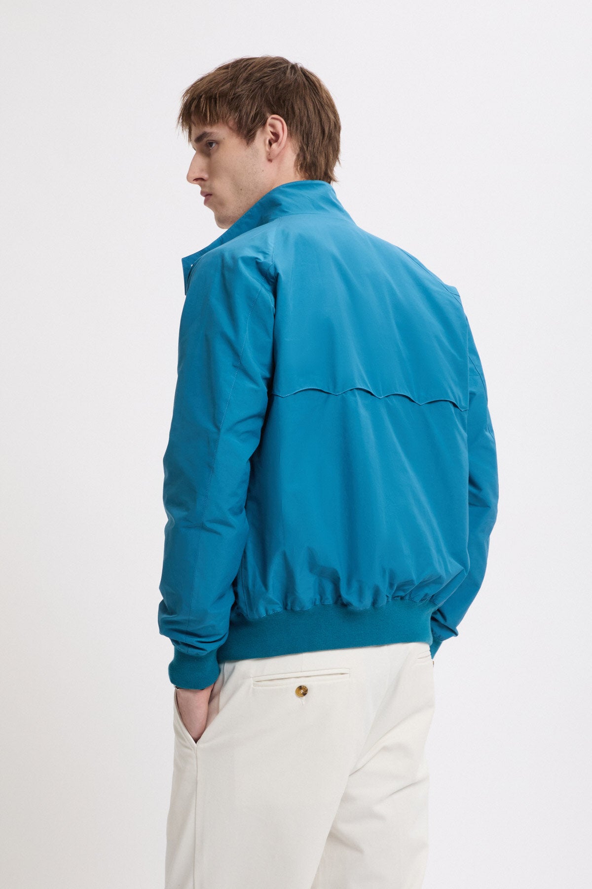 Il existe peu de vêtements qui soient plus British que la G9 de Baracuta, la seule et unique veste Harrington originale. Icône interculturelle par excellence, elle est conçue et fabriquée au Royaume-Uni depuis 1937. Elle présente l'emblématique doublure en Fraser Tartan, caractéristique de son attrait intemporel. La veste compte d’autres caractéristiques distinctives, dont le col classique à deux boutons, des poches profondes conçues pour accueillir deux balles de golf, les poignets et l'ourlet côtelés, ainsi que l'incontournable empiècement de dos en forme de parapluie, conçu pour empêcher l'eau de pluie de pénétrer. Baracuta vous couvre le dos – littéralement ! Fabriquée au Royaume-Uni depuis le début et conçue pour le climat britannique imprévisible, c'est une pièce polyvalente qui peut être portée dans n'importe quel endroit, par n'importe qui et en n'importe quelle saison.