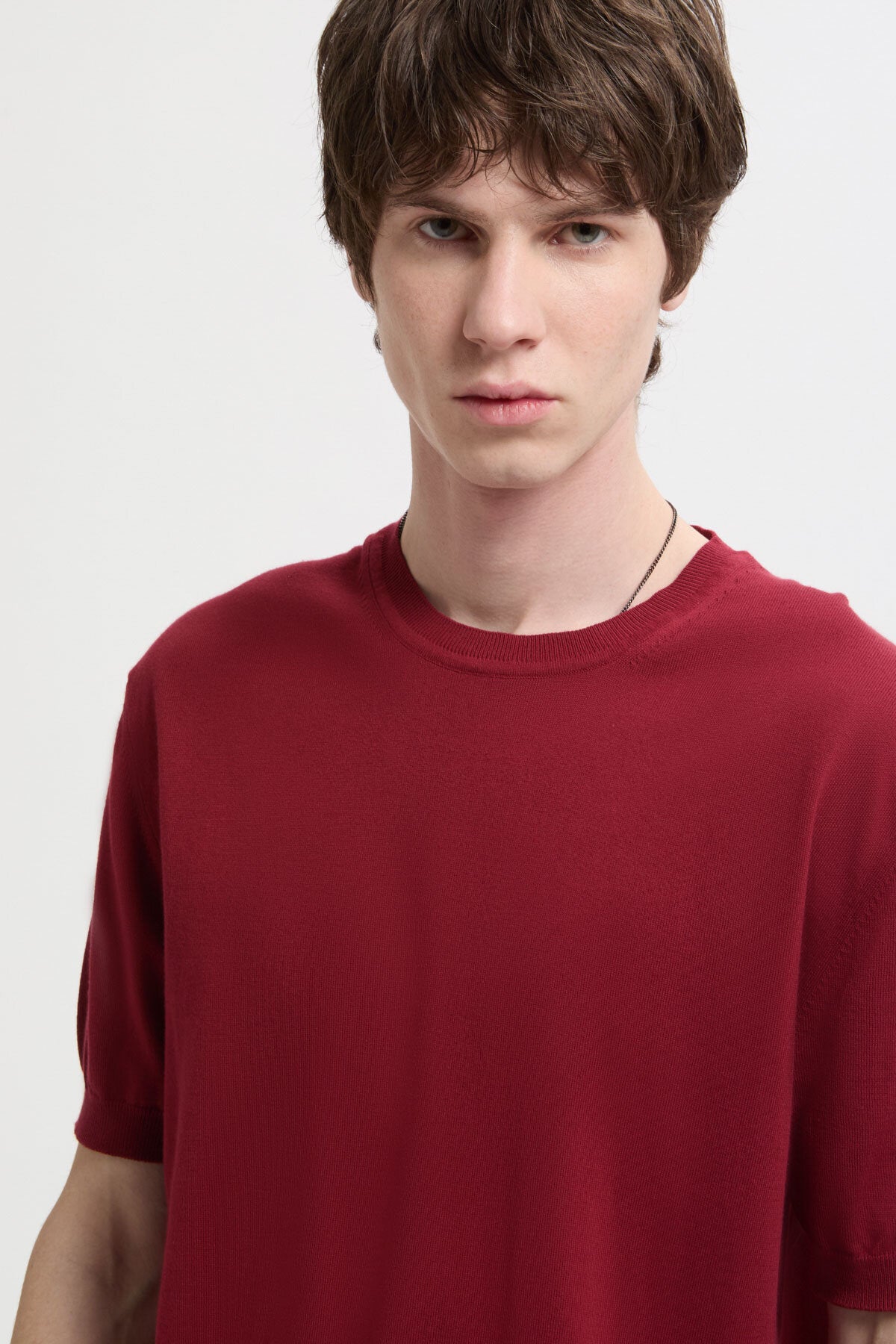 Baracuta utilise les tailles britanniques. Le t-shirt en maille présente une coupe slim.