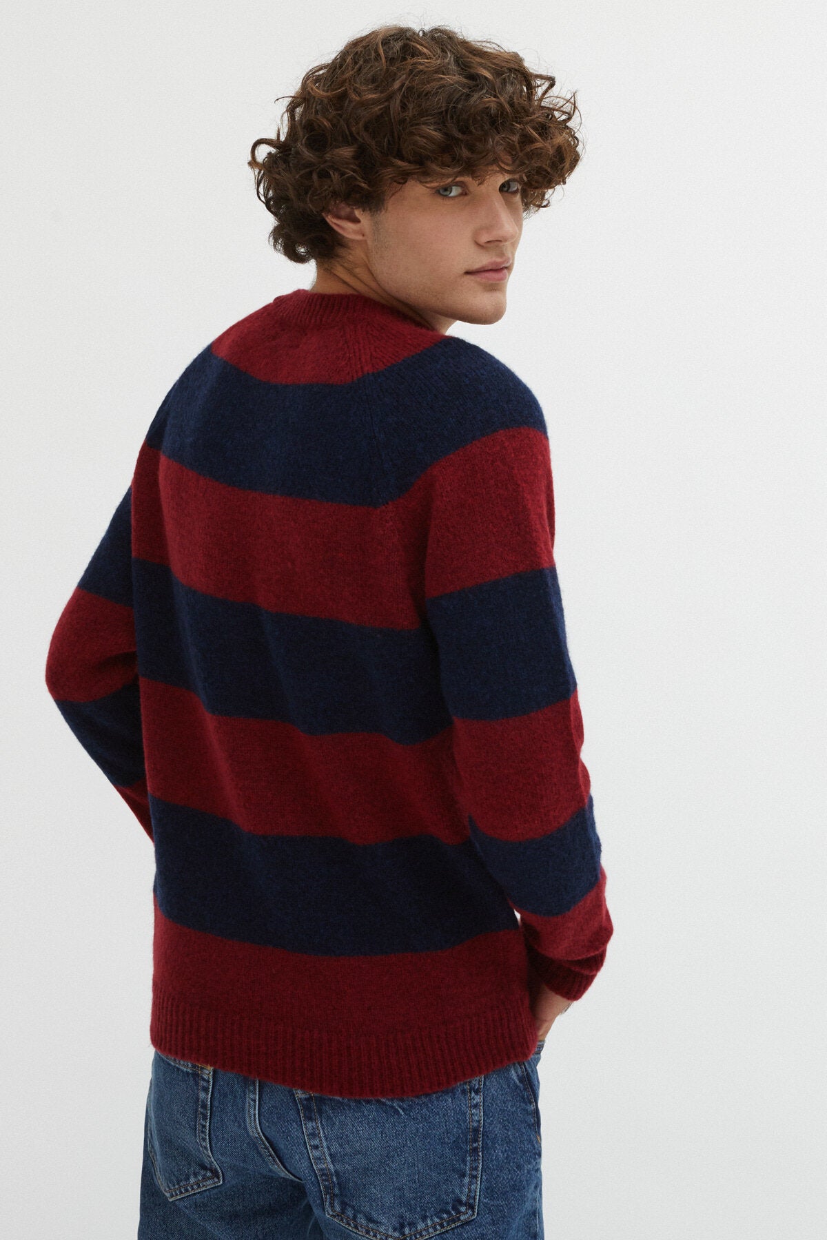 • • Col ras du cou « shaggy dog » à rayures en contraste