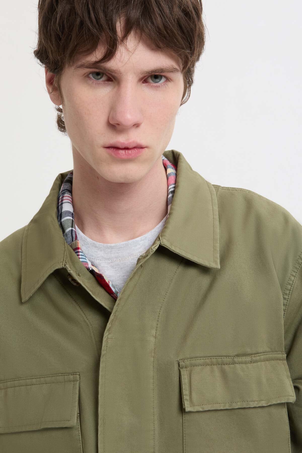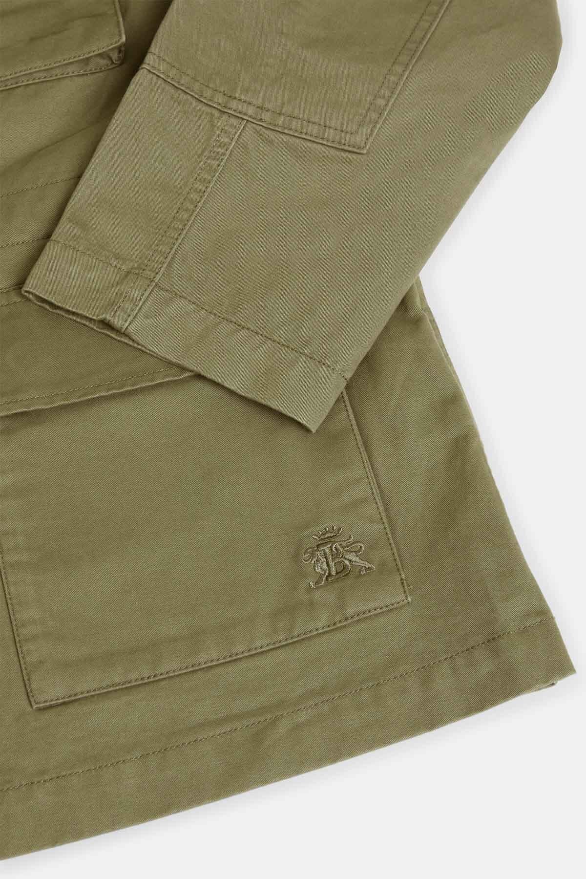 • La veste Field en sergé est fabriquée en sergé 100 % coton, un tissu connu pour son tissage diagonal distinctif qui allie résistance et douceur. Cette structure donne non seulement une texture subtile à la veste, mais elle permet également à l'air de circuler, ce qui la rend légère et respirante, idéale pour la superposition au fil des saisons.